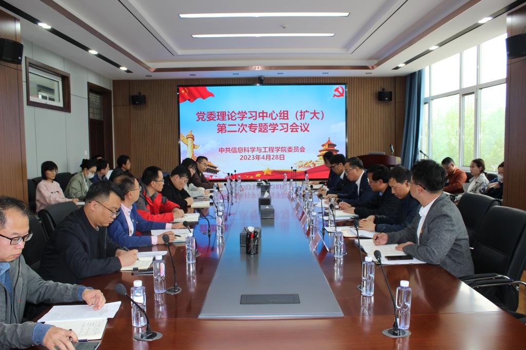 4月28日下午,信息科学与工程学院(软件学院)党委在一号楼336室召开理论学习中心组(扩大)第二次学习会,专题学习贯彻习近平新时代中国特色社会主义思想主题教育相关内容。学院领导班子成员、科级干部、系主任、党支部书记、组织员和辅导员参加会议,会议由学院党委书记王昕主持。