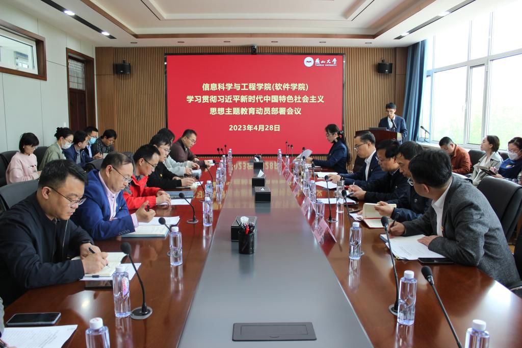 4月28日下午,信息科学与工程学院(软件学院)在信息馆一号楼336室召开学习贯彻习近平新时代中国特色社会主义思想主题教育动员部署会议。学院领导班子成员、科级干部、系主任、党支部书记、组织员和辅导员参加会议,会议由副院长练秋生主持。