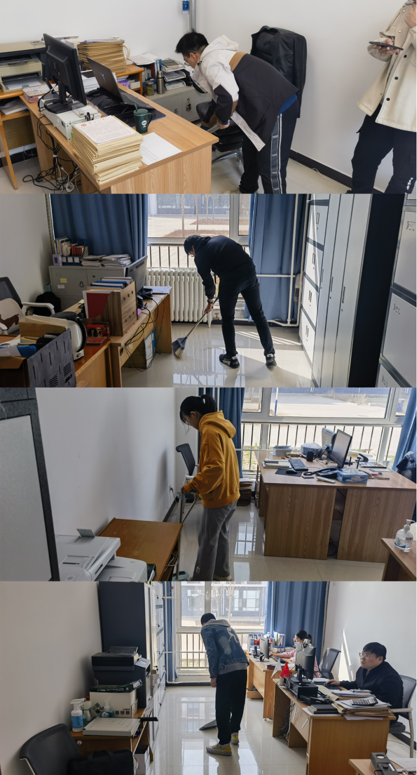 活动当天,预备党员们对办公楼走廊、辅导员办公室以及会议室进行了全面的清扫,并对办公室物品进行擦拭。打扫过程中同学们认认真真、一丝不苟,不漏掉任何一个细节,不忽视任何一个角落。虽然工作难度不大,但是任务量却很大,同学们汗流浃背,却也毫无怨言。他们用行动去诠释了一名共产党员应有的责任与担当。