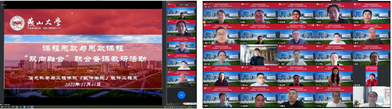 11月17日下午,信息科学与工程学院(软件学院)软件工程系与马克思主义学院联合开展课程思政与思政课程“双向融合”联合备课教研活动,软件工程系全体教师和马克思主义学院7位教师、教务处相关老师参与教研活动。本次活动由软件工程系主任王林主持。