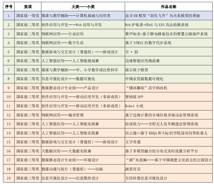 近日,历时半年的2022年(第15届)中国大学生计算机设计大赛国赛结果揭晓,我校共获得国家级一等奖1项,国家级二等奖8项,国家级三等奖10项。