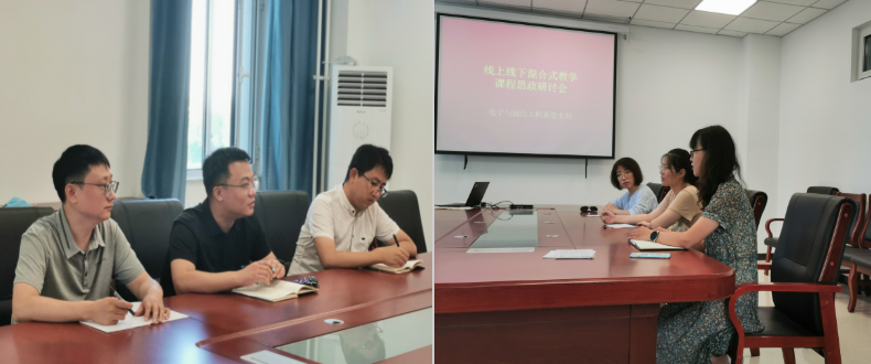 为更好地在线上线下混合式教学新模式下开展课程思政建设工作,在信息科学与工程学院党委的领导下,电子与通信工程系党支部于8月17日组织召开线上线下混合式教学课程思政研讨会。会议由党支部书记张涛主持,支部委员刘帅、石保顺,教师代表荆楠、彭秀平、郭肖楠参加会议。