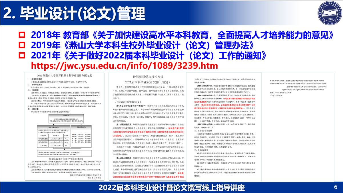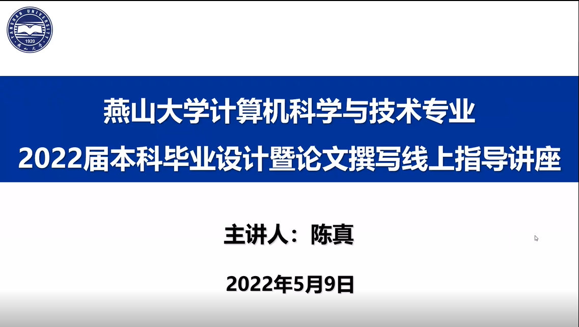 计算机科学与技术专业在往年毕业设计常见问题的基础上,制定了《燕山大学2022届计算机系本科毕业论文形式审查明细表》。陈老师通过实例分析,详细向毕业生解读了毕业论文写作的基本要求,论文各部分撰写方法,正文公式插图、插表、英文缩略词、参考文献、字体、页码和页眉的书写规范以及论文印刷与装订过程中的注意事项等等。陈老师还向同学们展示了往届的优秀毕业设计。最后,学生们积极踊跃提问,陈老师耐心回答了学生们在做毕业设计和撰写毕业论文过程中可能遇到的问题。