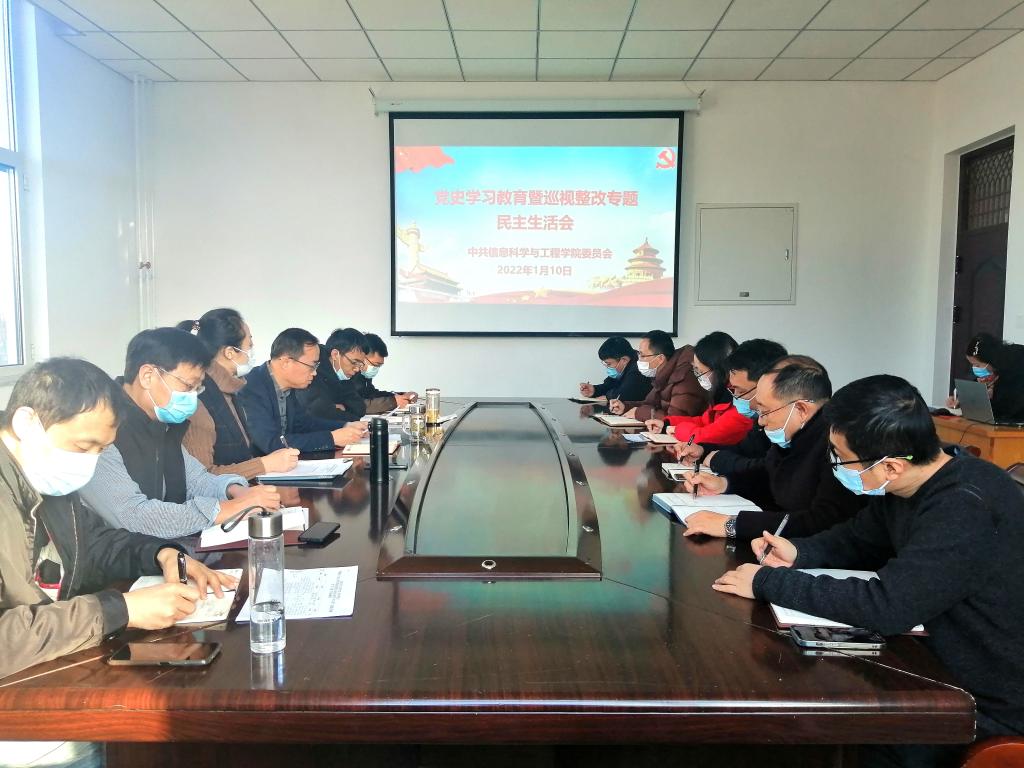 按照学校党委组织部统一部署,1月10日下午15:00,信息科学与工程学院(软件学院)党委在一号楼131室召开党史学习教育暨巡视整改专题民主生活会。学院处级以上党员领导干部王昕、练秋生、苏静、王恩福参加会议,副院长齐跃峰(无党派)、王常武(民主党派)及专职组织员、教职工党支部书记、团委书记、机关科级干部列席会议。会议由院党委书记王昕主持。