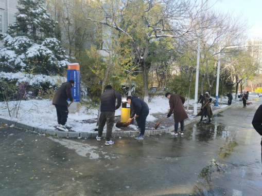 2021年11月7日,燕大迎来了冬天的第一场雪,这给同学们带来了巨大惊喜的同时,也为同学们的出行带来了不便。信息科学与工程学院研究生第三和第五党支部组织20级积极分子在11月8日下午3点对信息馆附近地区进行了“志愿扫雪,方便你我”的志愿服务活动,确保同学们的出行安全。
