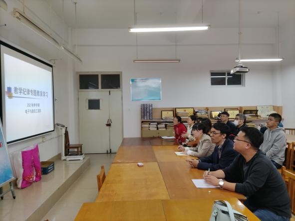 为贯彻落实《深化新时代教育评价改革总体方案》文件精神,进一步加强教风、考风建设,规范教师课堂和监考纪律,10月14日下午,电子与通信工程系全体教师在信息馆120室举行了教学纪律专题教育学习活动暨课程思政集体备课。会议由支部书记张涛主持,副院长练秋生和副院长王常武参加了本次会议。