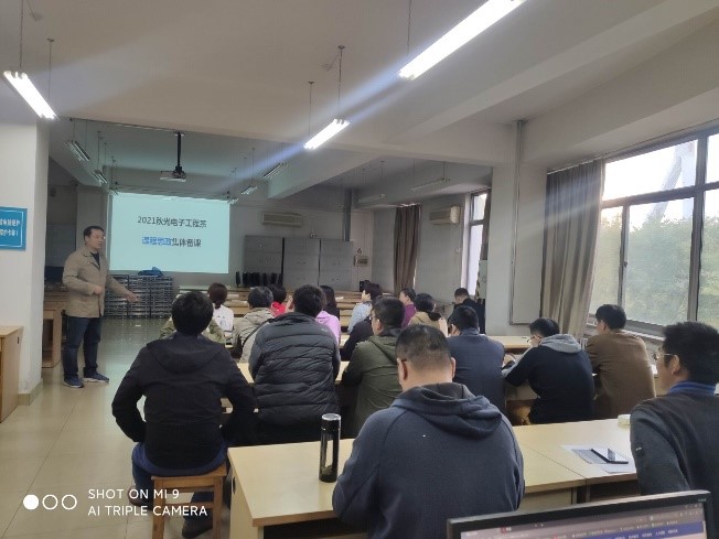 为了贯彻落实《深化新时代教育评价改革总体方案》文件精神,进一步加强教风、考风建设,规范教师课堂和监考纪律,10月14日下午,光电子工程系在信息馆201组织了教学纪律专题教育学习会暨课程思政集体备课,会议邀请副院长王常武参加,由系副主任刘雪强主持,全系教师参加。