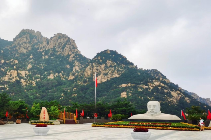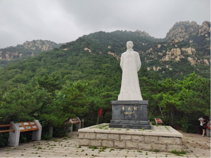 经讲解员介绍得知,“昌黎五峰”四个大字是李大钊先生1919年来五峰山时所题,右边是巨型花岗岩李大钊纪念像。李大钊先生在这里,写出了著名的与胡适论战的公开信《再论问题与主义》,一针见血地指出当是问题所在,宣扬自己的革命思想,为以后革命指引了思想道路。