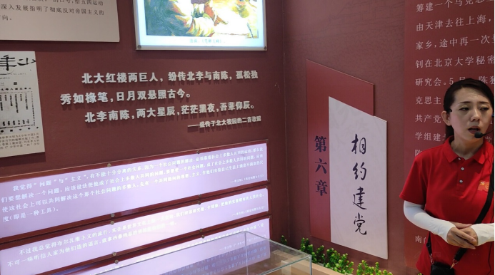 参观完后,讲解员接受队员们的采访,总结了李大钊精神对当今社会的深远影响