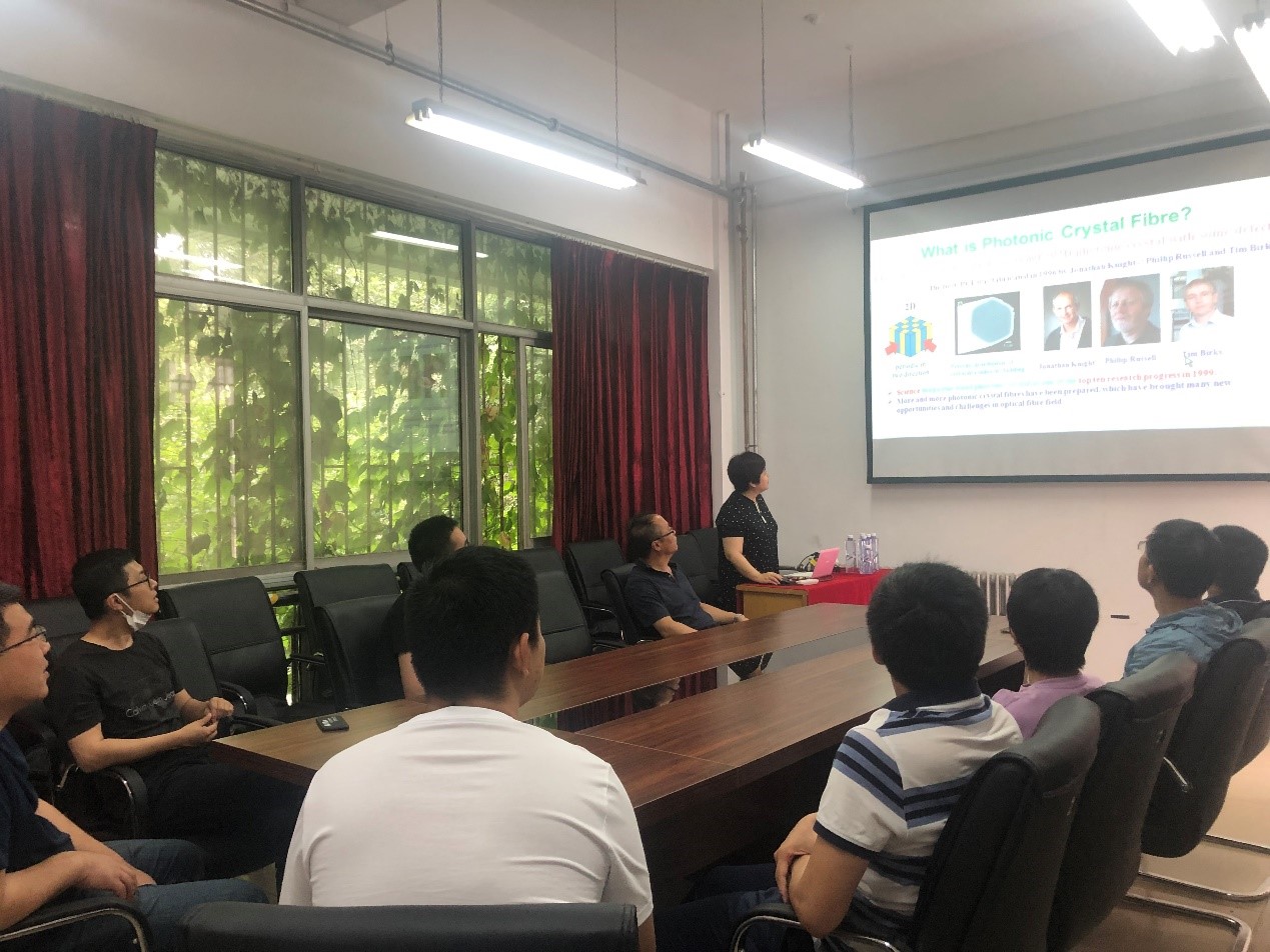韩颖老师为该项目优秀小组成员,此次报告介绍了特种光纤近年来的发展现状和本课题组在特种光纤领域开展的相关工作,将项目中掌握的学术报告基本结构形式及相关实用技能融入其中。此次报告不仅进行了有效地学术交流,还提高了光电子工程系教师们的英文学术交流热情,助力我校“双一流”建设和国际化办学。
