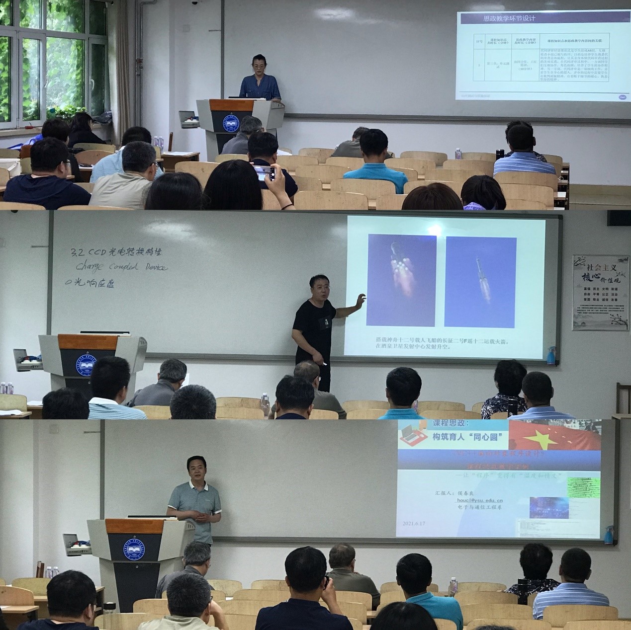 为进一步加强和落实中共中央、国务院《关于加强和改进新形势下高校思想政治工作的意见》以及全国高校思想政治工作会议精神,拓宽高校思想政治工作的空间,提升学院教师思政育人的意识和能力,学院于6月17日下午在四教114室举办信息学院第三届课程思政教学竞赛。经学院各系推选出来的11名教师参加了本次竞赛。竞赛特邀具有丰富教学和评审经验的学院督导组专家许成谦、窦燕和李炳新3位老师担任评委,学院党委书记王昕、教学副院长王常武出席了竞赛活动,各专业青年教师现场观摩了竞赛,竞赛由王常武副院长主持。