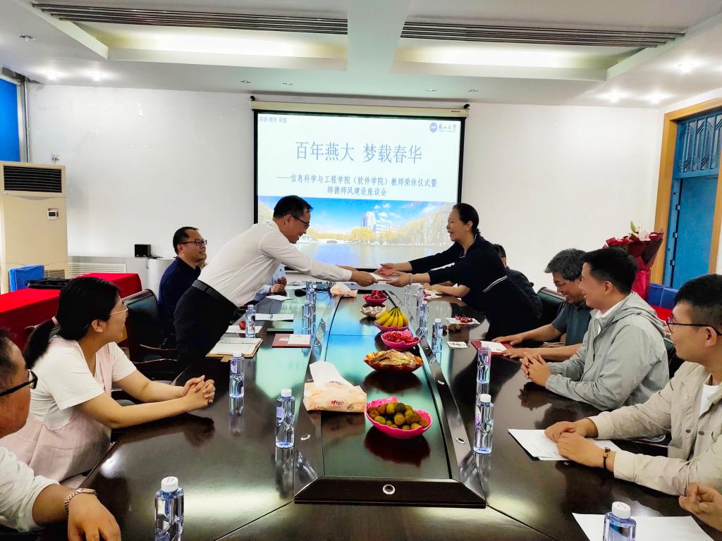 为营造“尊重知识、尊重人才”的浓厚育人氛围,传承老一辈信院教师爱岗敬业、无私奉献的精神,6月10日下午,信息科学与工程学院(软件学院)在信息馆302会议室为我院退休教师原福永、陈琦和卢启柱老师举行荣休仪式暨师德师风建设座谈会。院党委书记王昕、计算机系和光电子系系主任、荣休教师及新入职教师参加了此次座谈会。会议由工会主席王恩福主持。