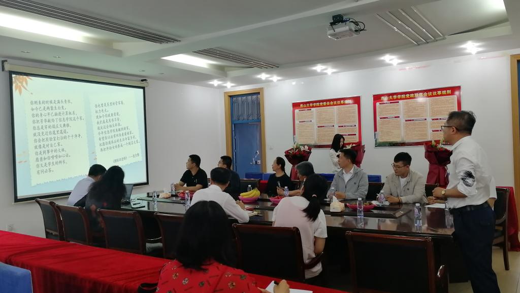 最后,由王昕为荣休教师颁发了纪念品,并发表总结讲话。他首先代表全院师生向三位老师为学院做出的贡献表示感谢并致以崇高的敬意。他表示,在座的退休教师为了事业和理想先后选择了燕山大学,为教育事业奉献了青春年华,学校所取得的成绩与你们密不可分。作为一所发展中的重点大学,我们一直将弘扬师道作为自己的使命追求,格外重视和珍惜离退休教职工这笔宝贵的财富。今天这场特殊的仪式,感怀的是师道,传承的是精神。学院希望通过荣休仪式能够让大家更好地获得燕大人的归属感、荣誉感和幸福感,让尊师重教和师德传承在燕园发扬光大。我们共同祝愿三位老师退休后的生活更加多姿多彩,幸福美满。