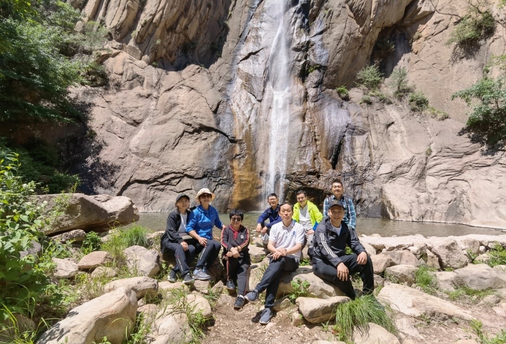 清晨,乘坐大巴车来到了祖山北麓的花厂峪地区,按照路标指引登上了山间小路。青山连绵,流水潺潺,沿途的美景不断映入眼帘,老师们的心情无比愉悦。虽然天空飘起了小雨,但大家热情不减。经过短暂避雨后,老师们互相扶助,继续攀爬,最终到达了北龙潭瀑布,欣赏了瀑布的秀丽景色。
