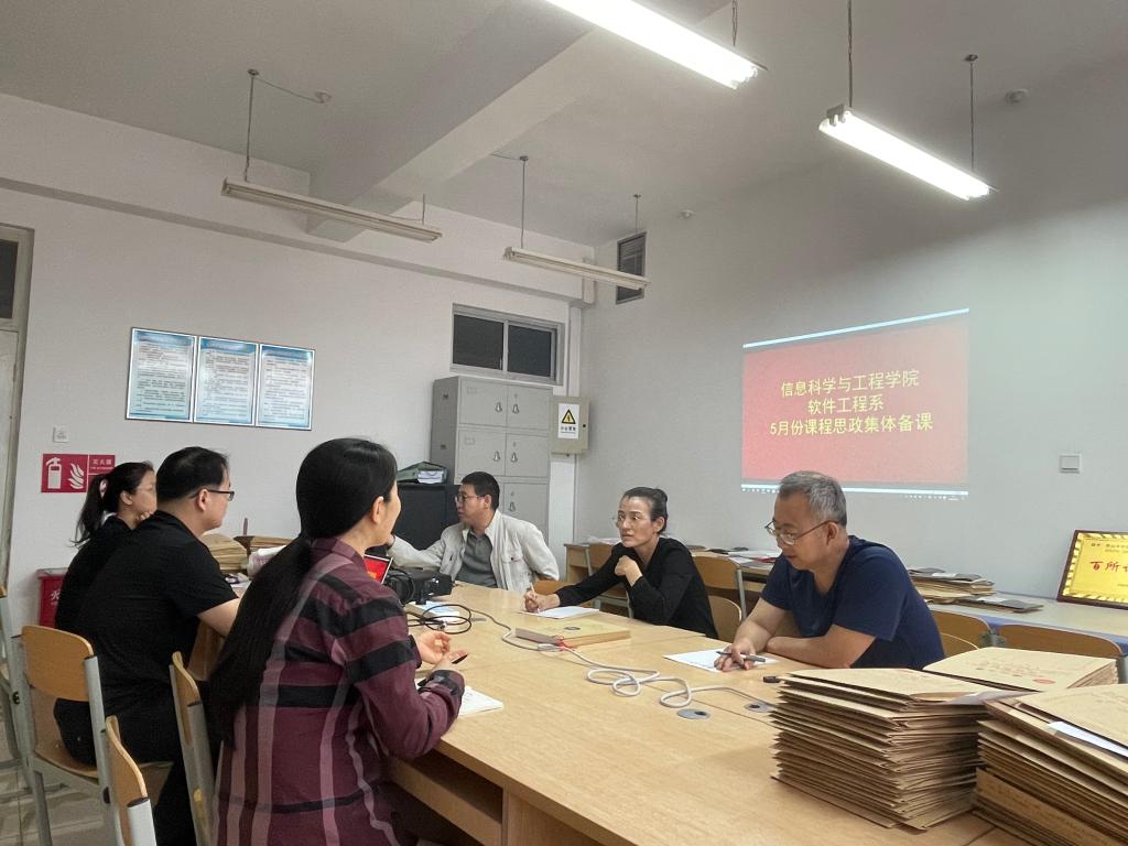 5月31日上午9:00,信息科学与工程学院(软件学院)软件工程系软件质量保证与测试、软件项目管理、Java Web开发技术、数据库原理、汇编语言程序设计、软件界面设计等课程授课教师在信息馆224进行了“课程思政”集体备课会议,会议由软件工程系副主任张炳主持。