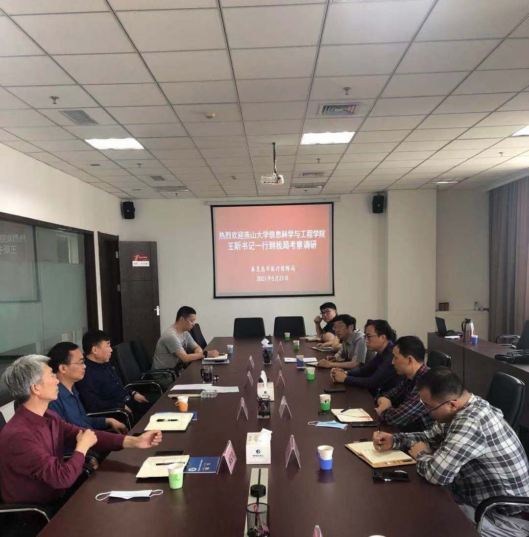 5月21日上午,信息科学与工程学院党委书记王昕一行赴秦皇岛市医保局,就市委“二十条措施”中“支持燕山大学建设科技成果转化中心,支持市属医院、养老院与燕山大学进行‘医工结合’项目对接”等方面进行考察调研。秦皇岛市医疗保障局局长钟涛等热情接待了调研组一行。信息科学与工程学院副院长王常武、软件工程系主任王林、计算机工程系教授刘文远、计算机工程系副教授高畅等参加调研座谈。