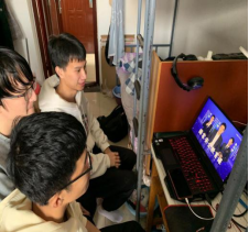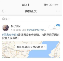 学生观看全国高校学生国家安全素养展示并参与微博#国家安全日#话题活动
