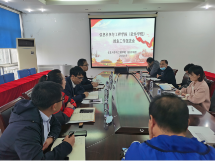 为进一步贯彻落实学校关于毕业生就业工作有关政策和要求,提升就业工作的精准性和实效性,2021年4月9日上午,信息科学与工程学院(软件学院)领导班子及各系主任、毕业班辅导员在信息馆302会议室召开2021年春季学期就业工作促进会,通过早指导、早部署、早发力,扎实有效推进2021届毕业生就业工作。