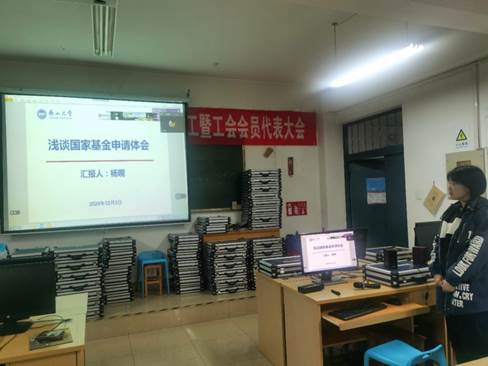 杨晛以“浅谈国家基金申请体会”为题,详细介绍了国家基金中各部分的撰写经验。在基金的撰写中,围绕研究内容,申请书各主要部分要环环相扣;初稿完成后,要反复修改至少10稿;版面要整洁清楚、层次分明,细节方面(如,字体、间距、公式对齐、参考文献格式等)尤其要注意,不要出现错误或不统一的情况。