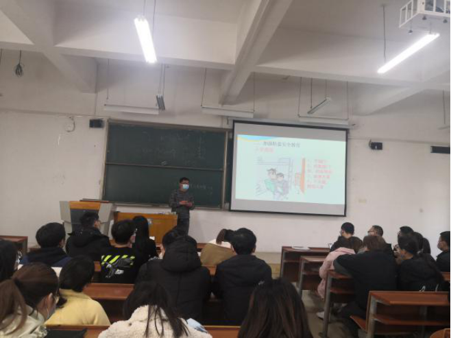 一堂安全教育专题课。辅导员老师给所有学生上一堂安全教育专题课,结合实际案例,从防火、防盗、防诈骗、防传销、防网贷、防邪教、防暴恐、防事故、防溺水等多个方面加强教育,培养学生识别危机、防范危机的能力,提高安全意识。