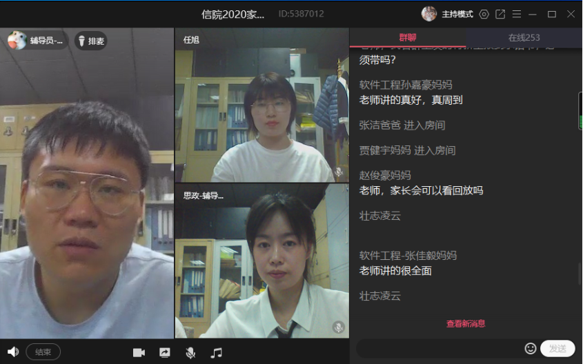 9月4日晚,信息科学与工程学院(软件学院)通过QQ群课堂线上召开2020级新生家长会。会议由宋冉、任旭和邹楠三位2020级新生辅导员老师主持,两百余位新生家长参会。