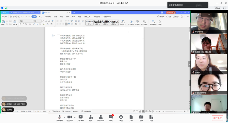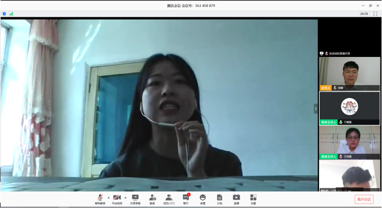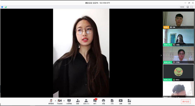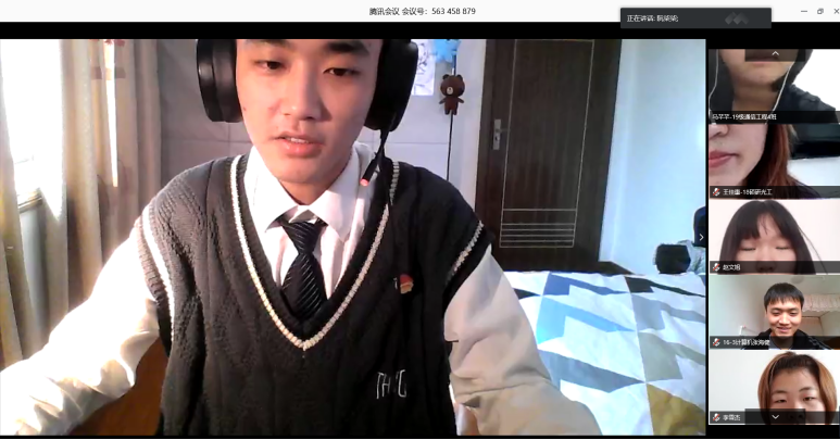 上午九点,“青春在战疫中绽放”主题团课及宣讲会通过腾讯会议直播开讲。