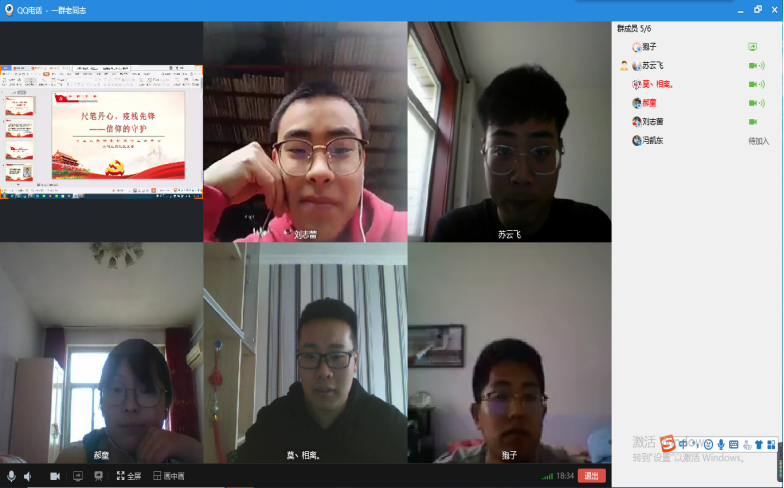张继尧同志提出虽然我们没有身处疫情第一线,但我们可以通过使用不同渠道积极宣传疫情相关知识,微信举报可疑病例或坐地起价的商家和减少外出等方法发挥模范带头作用。在视频会议的过程中,大家共同观看了“向疫情中每一位平凡的英雄致敬”视频,并分别发言提出自己的感想。