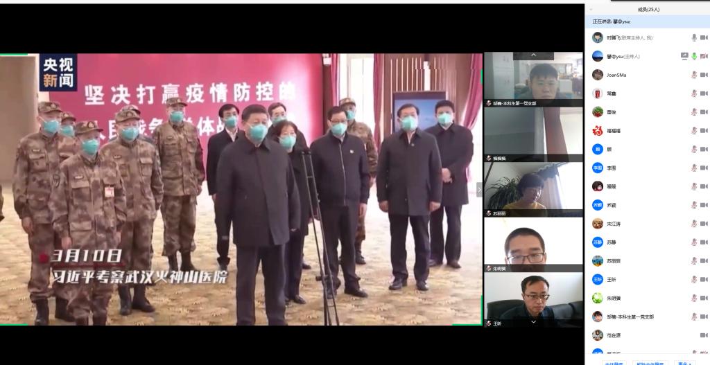 首先,与会人员集体观看了《总书记指挥这场人民战争——决战双胜》和《总书记指挥这场人民战争——坚决打赢》两段视频,共同学习了习近平总书记2月23日出席统筹推进新冠肺炎疫情防控和经济社会发展工作部署会议及3月10日在湖北省武汉市考察新冠肺炎疫情防控工作的重要讲话精神。