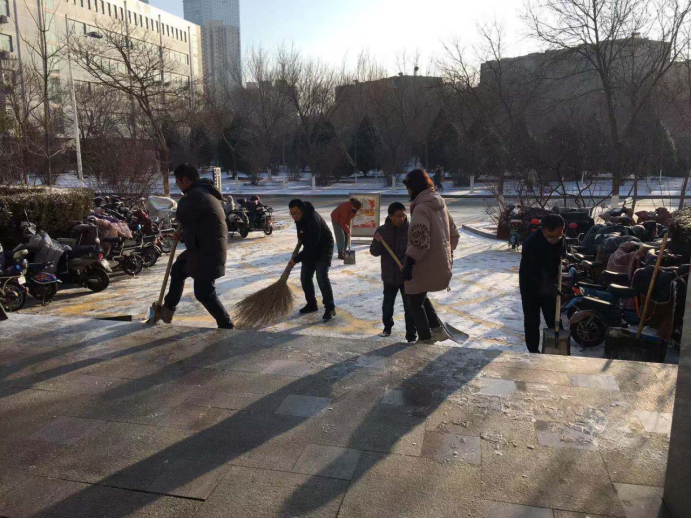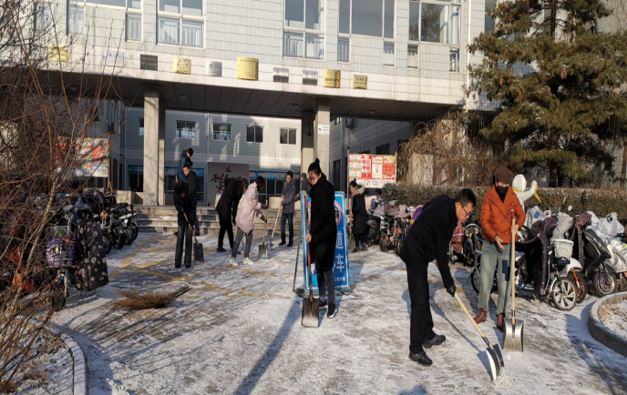 为保证师生的出行安全,一上班院党委书记王昕带领学院师生员工对信息馆周边开展扫雪除冰活动。师生们扫雪运雪,也干得热火朝天。天气虽然寒冷,但是大家却干得分外起劲,不一会儿工夫就将道路上的积雪清理干净,充分体现了信息学院师生不怕困难、勇于吃苦、乐于奉献的精神。