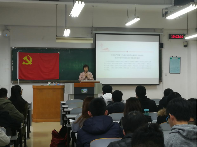 随后,全体支部党员在支部书记的带领下深入学习十九届四中全会精神。会议通过的《决定》充分体现了中国共产党高度的制度自信和自我完善的勇气。在这部分内容里,党员们从13个方面深刻理解了我国国家制度和治理体系具有多方面的显著优势。这更激励了青年党员要奋发有为,真抓实干,坚定理想信念,更好地为国家、学校建设做好每一件事,锤炼品格、磨炼意志、增长本领。