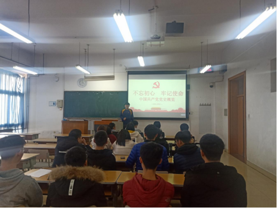 2019年11月14日,按照学校党委及党委学工部相关工作部署,信息科学与工程学院(软件学院)本科生第一党支部书记邹楠在(里)B103教室为支部党员作“不忘初心、牢记使命”主题教育党课,主要讲述中国共产党党史。