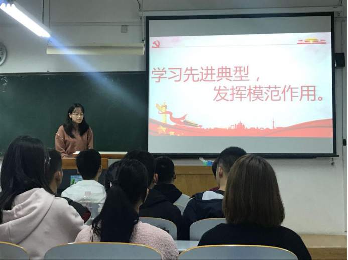 郎梓婷同志以“学习先进典型,发挥模范作用”为主题,给大家详细介绍了四位同志的故事。伟大时代呼唤伟大精神,崇高事业需要榜样引领。在实现中华民族伟大复兴的中国梦的前路上,榜样的力量是无穷的。