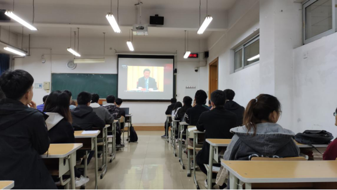 2019年10月21日,信息科学与工程学院本科生第一党支部党员、发展对象和入党积极分子在里仁教学楼B103观看《榜样4》专题节目。