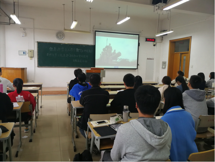 为回顾中华人民共和国七十年的奋进历程,赓续艰苦奋斗的精神血脉,展望新时代续写辉煌。信息科学与工程学院(软件学院)本科生第十党支部全体党员2019年10月24日在里仁教学楼B101观看纪录片《我们走在大路上》。