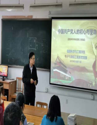 为庆祝新中国成立70周年,深入学习贯彻习近平新时代中国特色社会主义思想,认真落实学校“不忘初心、牢记使命”主题教育工作部署,进一步激发全院师生的爱国热情,信息科学与工程学院(软件学院)党委组织各党支部开展了庆祝新中国成立70周年主题党日活动。