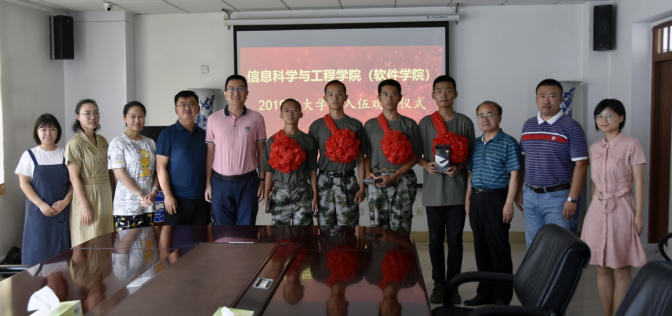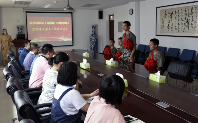 9月5日上午,信息科学与工程学院(软件学院)在里仁学院行政楼218会议室举行2019年大学生入伍欢送仪式,院党委书记卢辉斌、院党委副书记陈革新、副处级辅导员李浩然、学生科科长王恩福等出席了本次仪式。