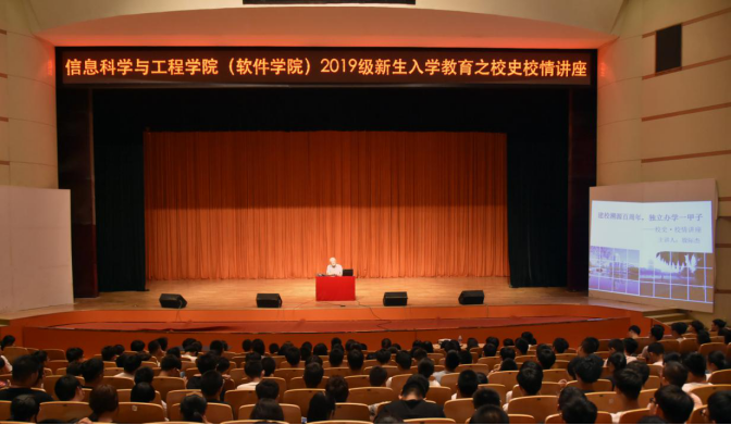 岁月流转,蓦然回首,燕大人栉风沐雨,砥砺前行。年年岁岁花相似,岁岁年年人不同,每年这个时刻,校园都会迎来新的面孔,注入新鲜的血液,为做好新生入学教育,熟知校情校史,增强历史观,信息科学与工程学院(软件学院)在9月3日19:00在东校区大学生活动中心组织安排了校史校情讲座,学院2019级860余名新生跟随学院殷际杰教授沿着时光隧道,用心聆听了燕大艰苦奋斗的创业历程。
