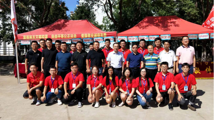 校领导与迎新工作人员合影