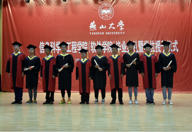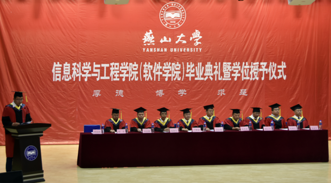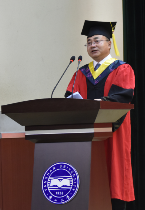 毕业典礼从奏唱中华人民共和国国歌拉开帷幕,接着,副院长齐跃峰宣读了毕业文件及学位授予文件,副院长练秋生宣读了《关于表彰2019届河北省优秀毕业生的决定》、《关于表彰2019届燕山大学优秀毕业生的决定》。