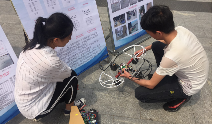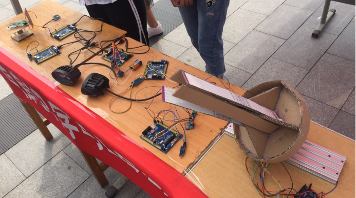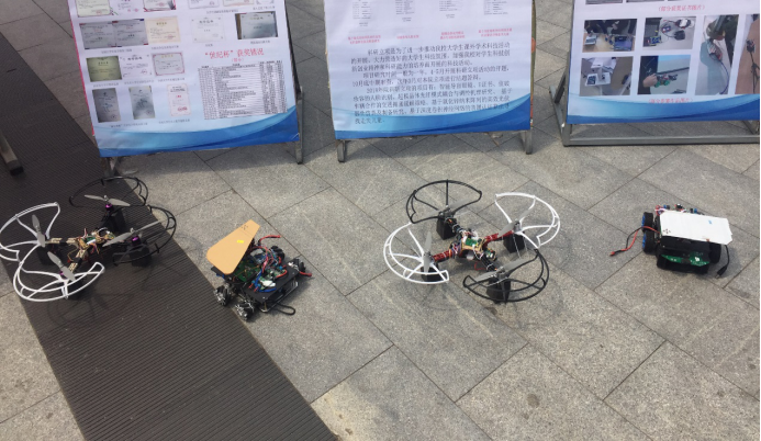 本次活动共展出科技实物作品8件,包括四旋翼飞行器、麦克纳姆轮小车、光通信系统、光追踪系统、旋转LED等;展出科技赛事纸质作品十余份,包括2018年“世纪杯”荣获特等奖及一等奖作品、2018年校科研立项指导性及指令性立项项目等,以展板海报的形式展示了2018年院科技赛事获奖情况、2018年电子设计大赛获奖作品、2018年燕山大学大学生多媒体设计大赛各赛组一等奖作品等。