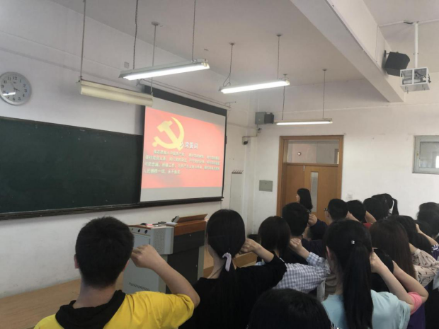 之后支部举办重温入党誓词活动,首先支部书记介绍此次活动的意义:一是为了庆祝中华人民共和国成立七十周年,牢记我党艰苦奋斗的历史。二是铭记党全心全意为人民服务的宗旨,不忘初心。三是通过此次活动,各位党员要牢记誓词,坚定信仰,艰苦奋斗,积极争先创优,在学习生活和工作中时刻发挥先锋模范作用,以良好的精神面貌,不断提高自己的综合能力,为实现中华民族伟大复兴的中国梦而不懈奋斗。