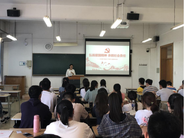 5月16日下午,信息学院本科生第二党支部在里仁学院B区103室召开了以“弘扬爱国精神 承担社会责任”为主题的庆祝新中国成立70周年的活动。