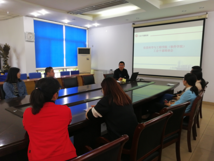2019年5月9日下午14:30,信息科学与工程学院(软件学院)工会在信息馆302开展了工会干部培训活动,活动由院工会主席李浩然老师主持,学院工会干部参加了培训活动。