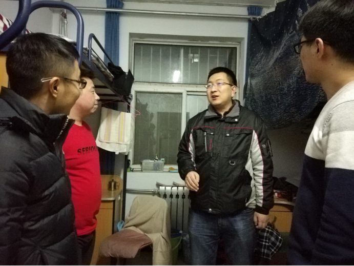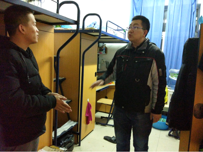 新学期辅导员走访学生宿舍,与学生亲切问候交谈,及时了解学生的思想状况和生活学习情况,加深了师生感情交流。同时,辅导员与自管会成员结合检查工作适时教育了学生要做好宿舍卫生,增强宿舍用电、用水、防火、防盗等方面的安全意识。今后,学生工作将更加认真的从严从细从实做好安全稳定工作。