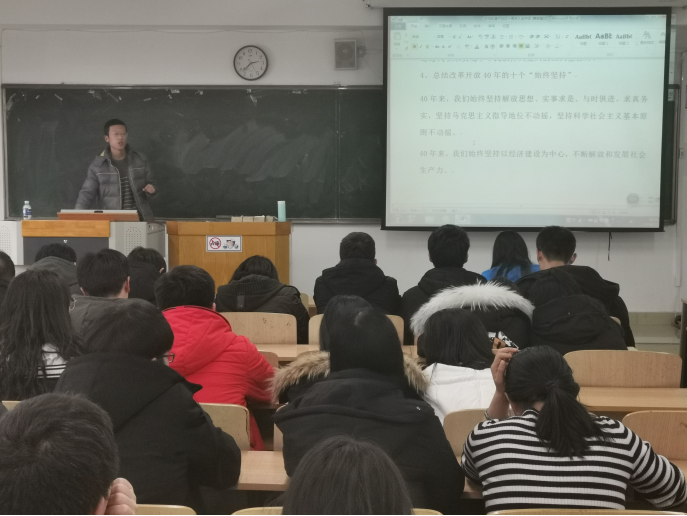 首先,由李浩然老师主持会议开始。然后,组织委员贺绍瑞带领全体党员一起学习了改革开放40周年大会上习近平总书记的讲话,回顾了改革开放40年来,党和国家走过的光辉历程,总结了各项事业发展取得的伟大成就和宝贵经验。改革开放40年,不仅深刻改变了中国,也深刻影响了世界。习近平总书记在大会上的重要讲话,引经据典、金句频出。九个“必须坚持”既是对改革开放经验的总结,又是确保改革开放的航船沿正确方向前行的根本遵循,也是在新的起点对中国人民和国际社会作出的庄严承诺,习近平总书记的讲话对学校学院推进各项工作具有重要指导意义。