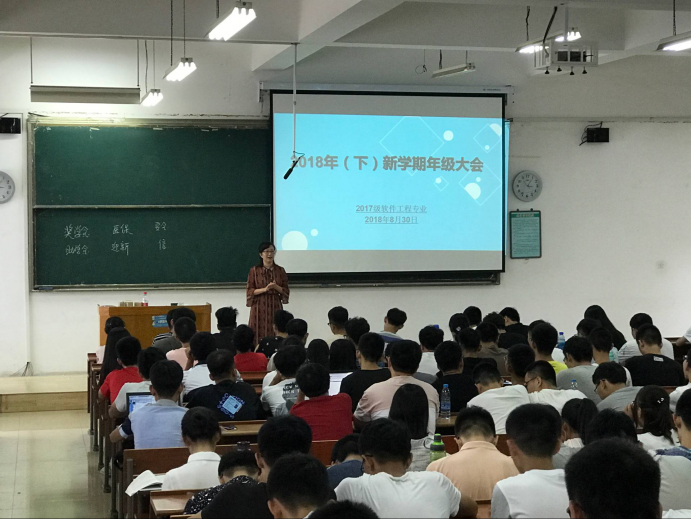 新学期伊始,为学生在开学之际把好脉、立好规、开好头,助力学生新学期学业、生活等各项工作,2018年8月30日下午三点,信息科学与工程学院(软件学院)2017级软件专业在西校区(里)J205召开年级大会。