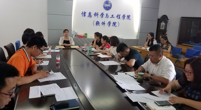 为积极配合学校相关工作安排,进一步加强辅导员队伍建设,切实做好大学生思想政治教育工作,2018年7月10日上午,信息科学与工程学院(软件学院)于信息馆302会议室召开专项会议,开展兼职辅导员面试工作,院党委副书记陈革新、团委书记方立华、学生科长王恩福以及全体专兼职辅导员出席此次面试。