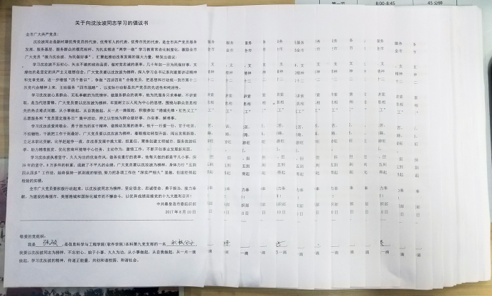 会议最后,与会的党员和入党积极分子认真学习了秦皇岛市委组织部发布的《关于向沈汝波同志学习的倡议书》并在倡议书上签名。大家一致表示,要进一步积极响应上级组织关于向沈汝波同志学习的决定,在实训过程中以身作则,做好同学们和老师的桥梁纽带,将“接力沈汝波、为民做好事”活动制度化、常态化,争当沈汝波式的好党员。