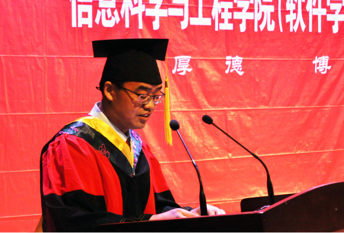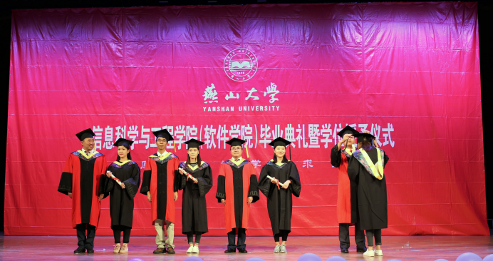 毕业典礼最后,院党委书记卢辉斌代表院领导致辞,他向毕业生提出三点希望和嘱托,一是希望同学们自强不息,永不言弃,不因成功而骄傲,不为挫折而气馁,做到坚持不懈,百折不挠;二是希望同学们脚踏实地,立足平凡,认认真真干好具体工作,一步一个脚印地去实现自己的人生目标;三是希望同学们勤于学习,敏于求知,只有不断学习,不断充实自己,才能跟上时代发展的步伐,才能最终成为时代的骄子,祖国的栋梁。最后,卢书记希望全体毕业生心中永远珍藏在燕山大学这段难忘岁月,永远记住燕山大学信息学院是同学们的避风港和精神家园,祝愿同学们身体健康、工作顺利、家庭幸福,前程似锦!