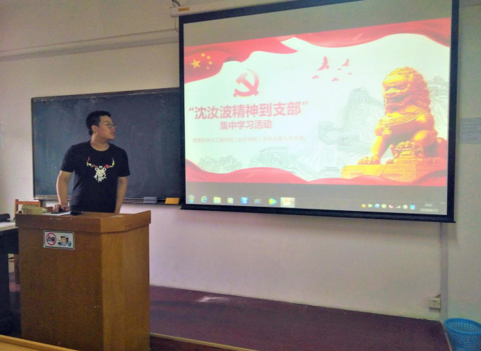 6月24日下午,信息科学与工程学院(软件学院)本科生第九党支部召集全体党员和积极分子,在东校区第三教学楼301教室组织开展了“沈汝波精神到支部”集中学习活动。